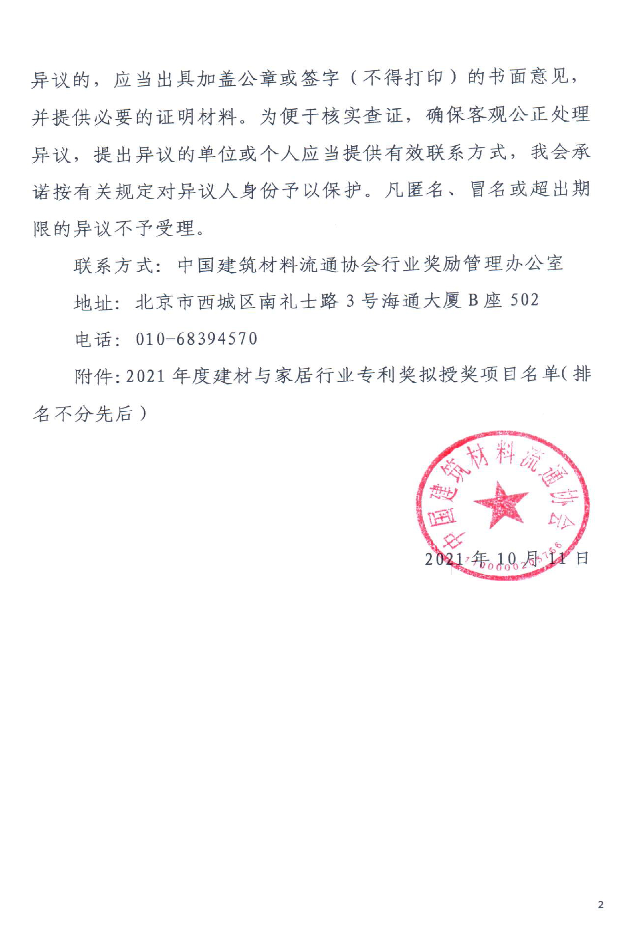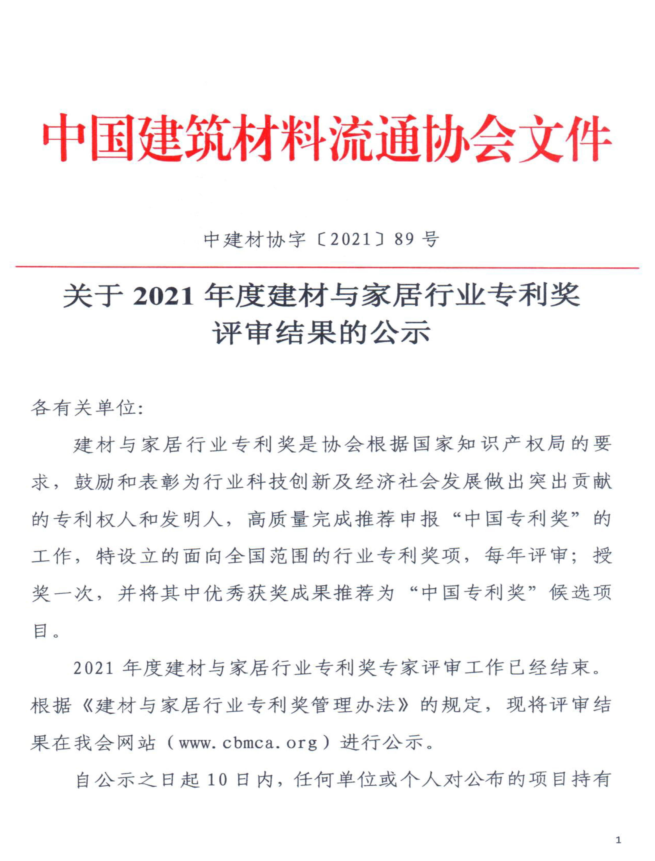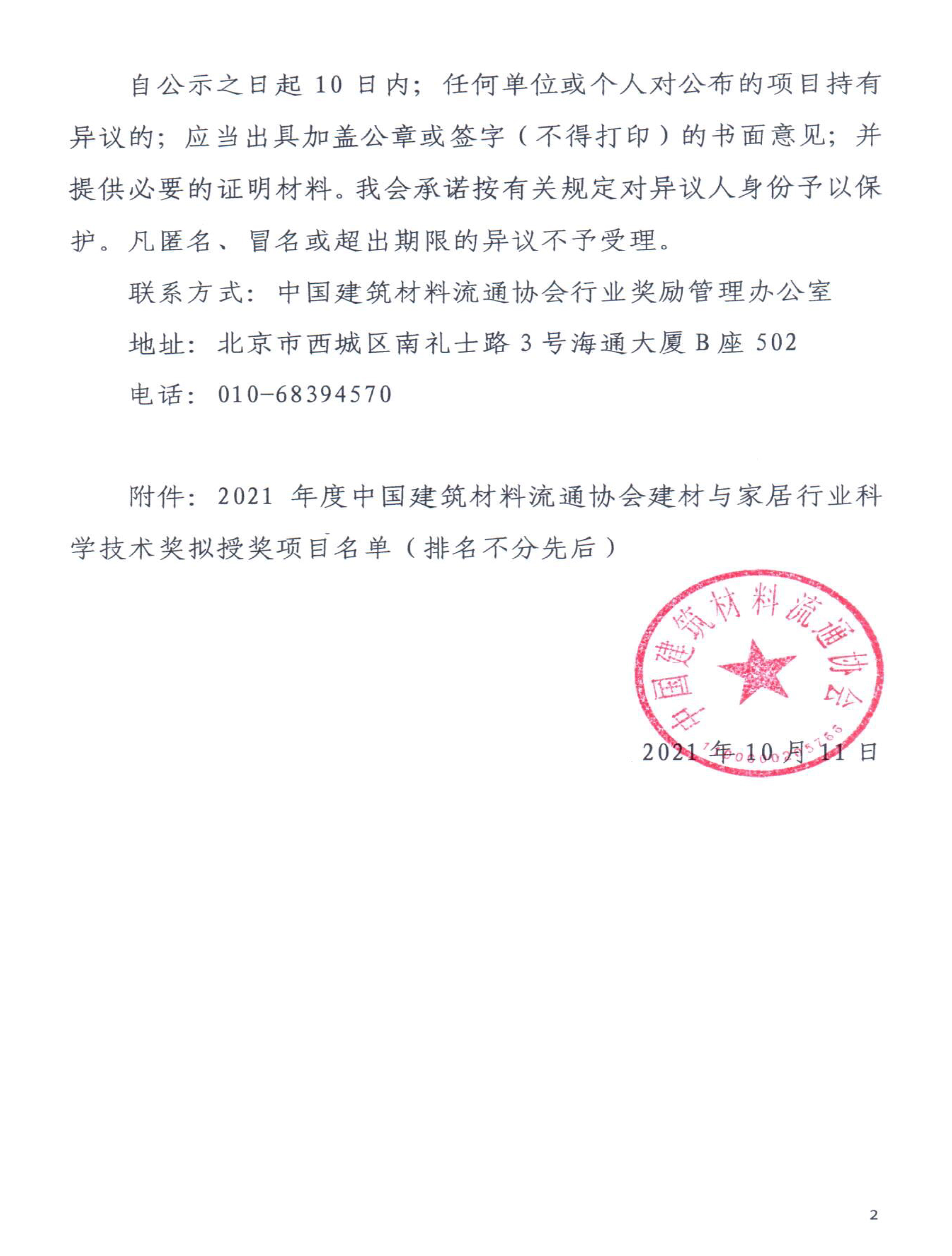 2021年度中國建筑材料流通協會科學技術獎